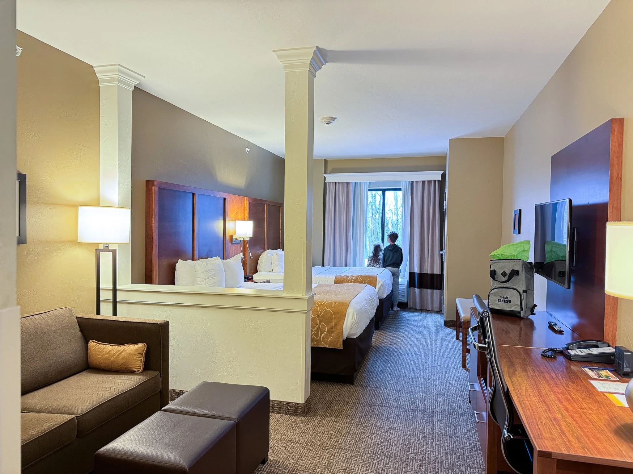Our room was tidy and had all of the amenities we look for in a hotel, including a fitness center, pool with a hot tub, and a free complimentary breakfast.